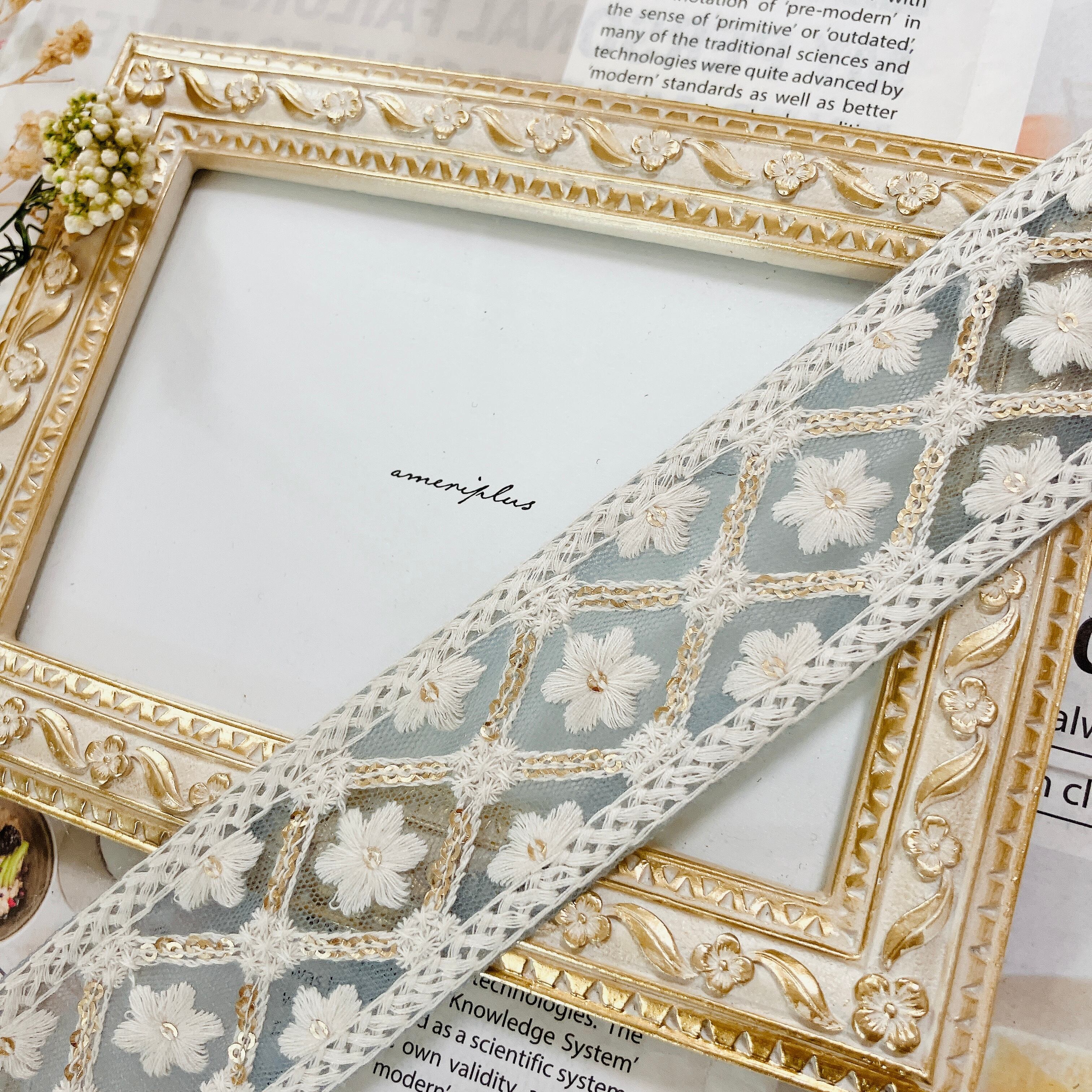 インドから直輸入した、カラフルで繊細なミシン刺繍が魅力のリボンです。