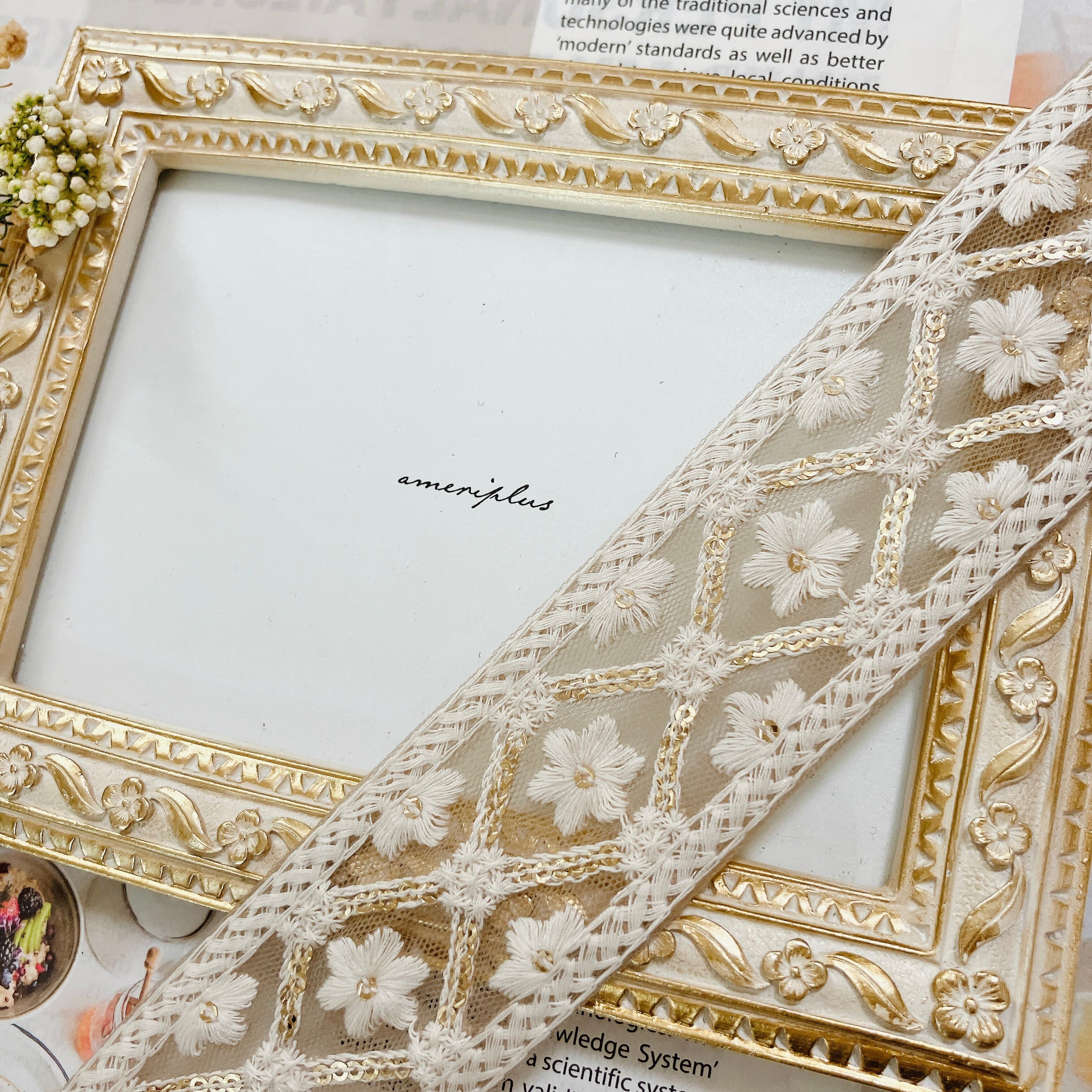 フルール・クラシック レースリボン [サンドベージュ]インド刺繍リボン A_0538