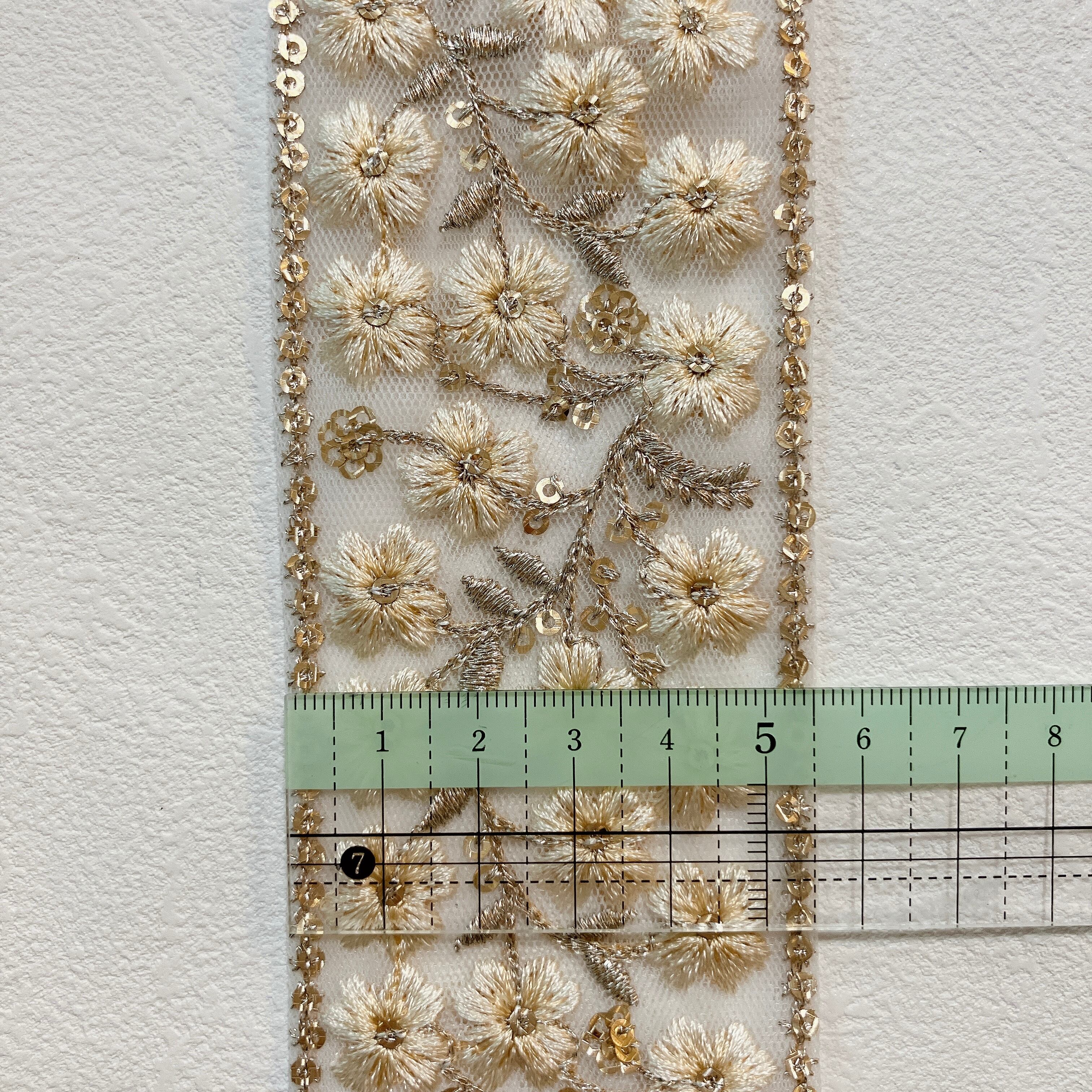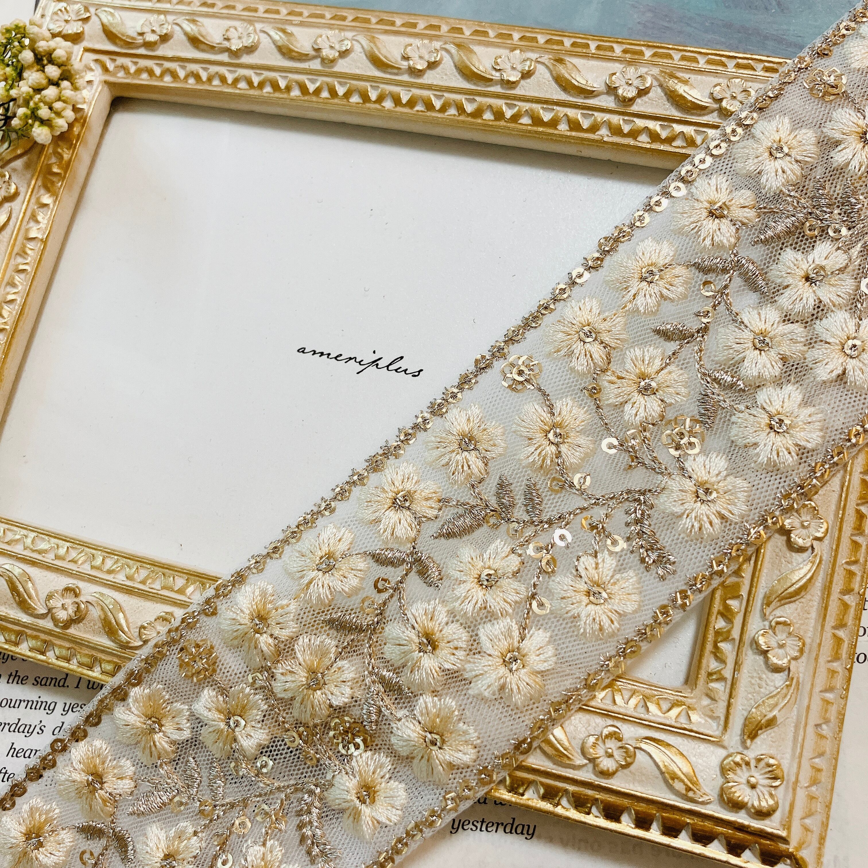 フルール・ド・ブリーズ 刺繍レースリボン [エクリュホワイト]インド刺繍リボン A_0545