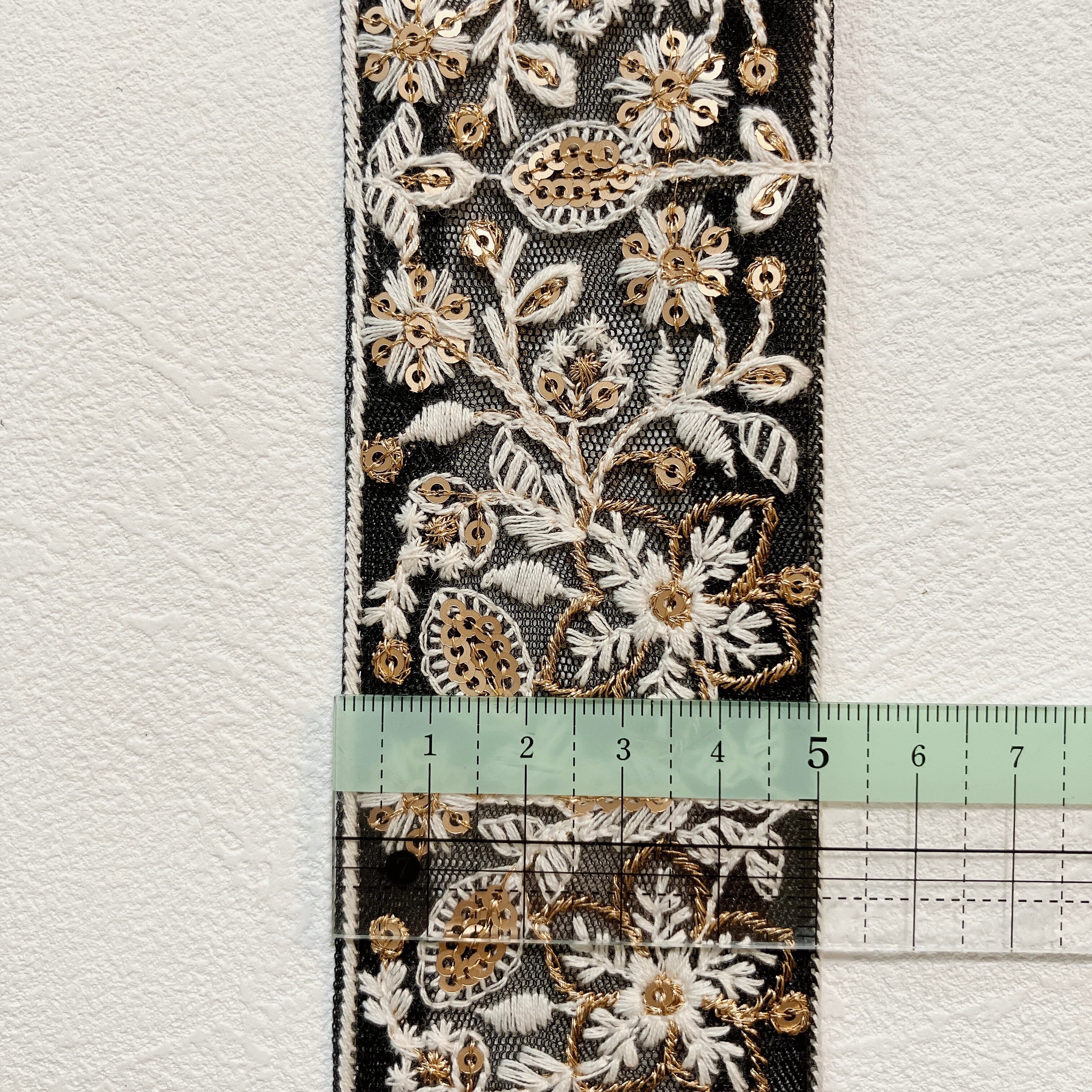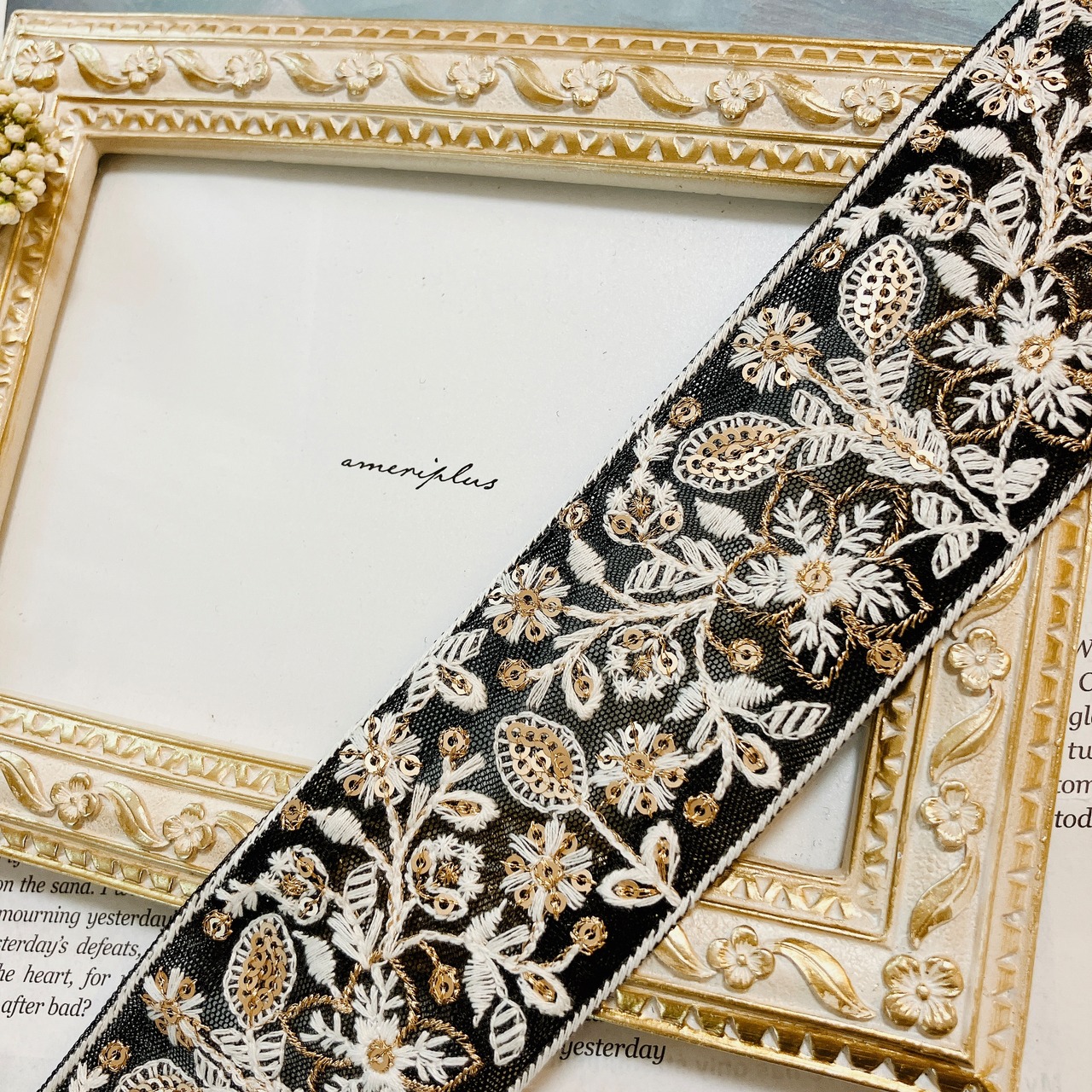ノーブル・ボタニカル 刺繍リボン [エレガントブラック]インド刺繍リボン A_0546