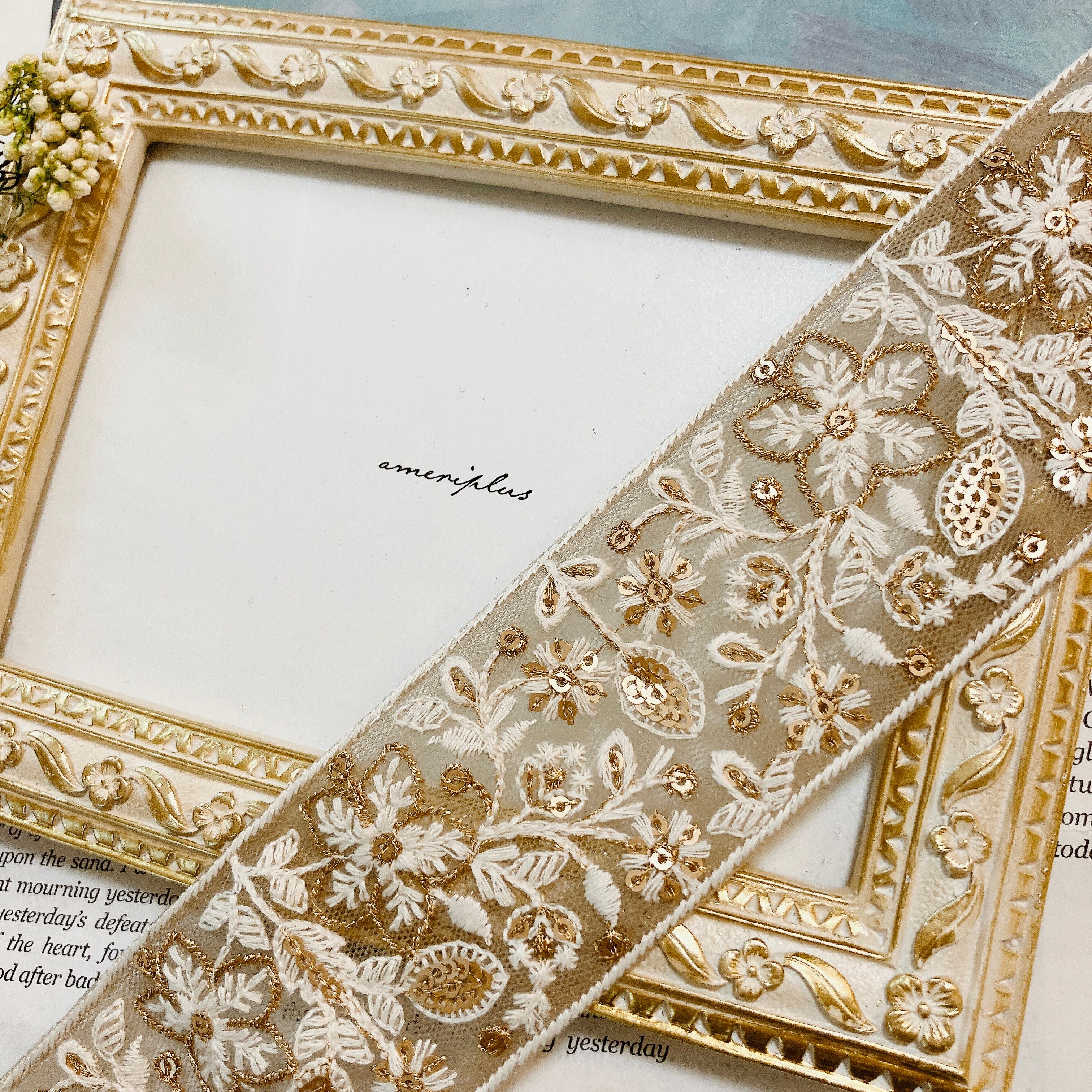 インドから直輸入した、カラフルで繊細なミシン刺繍が魅力のリボンです。