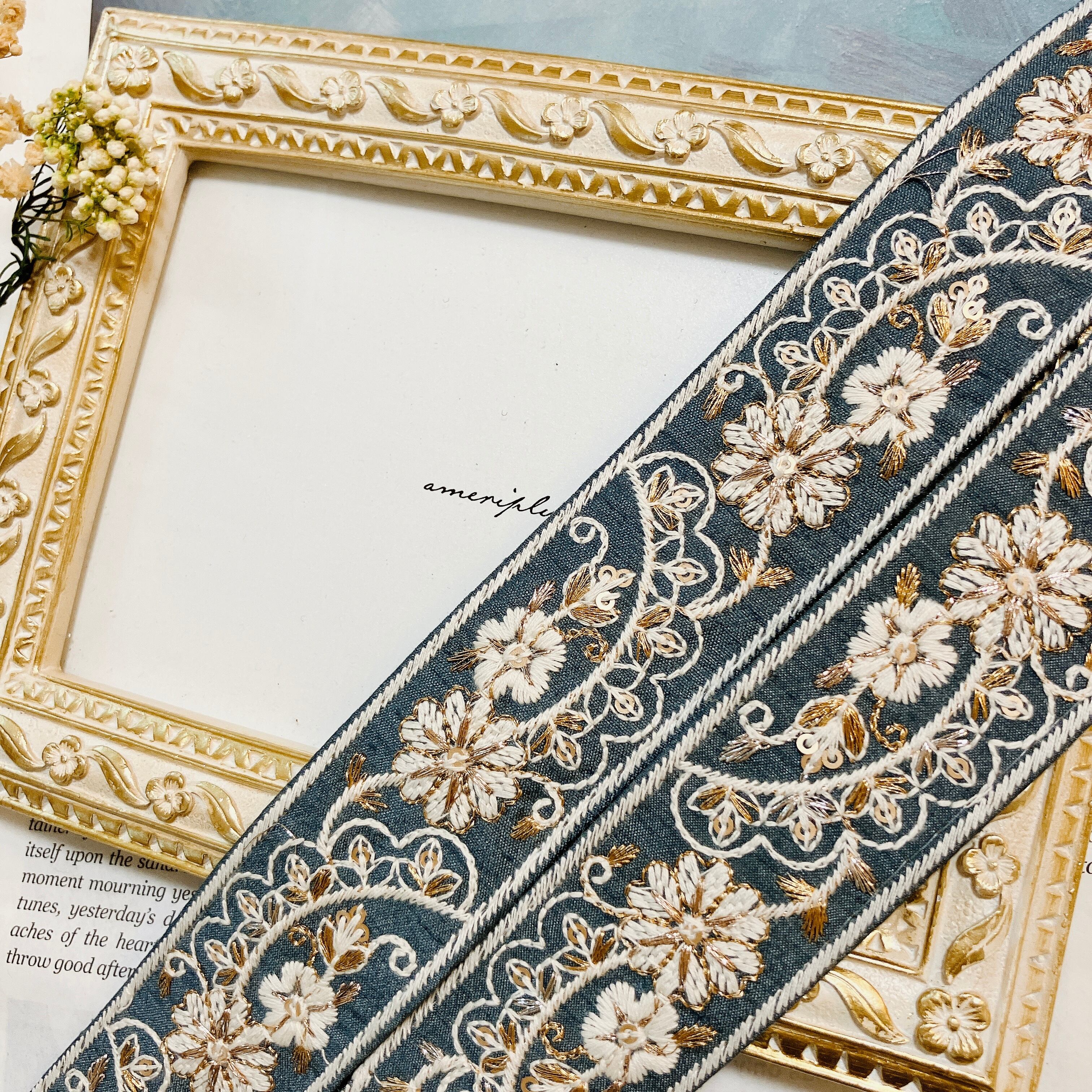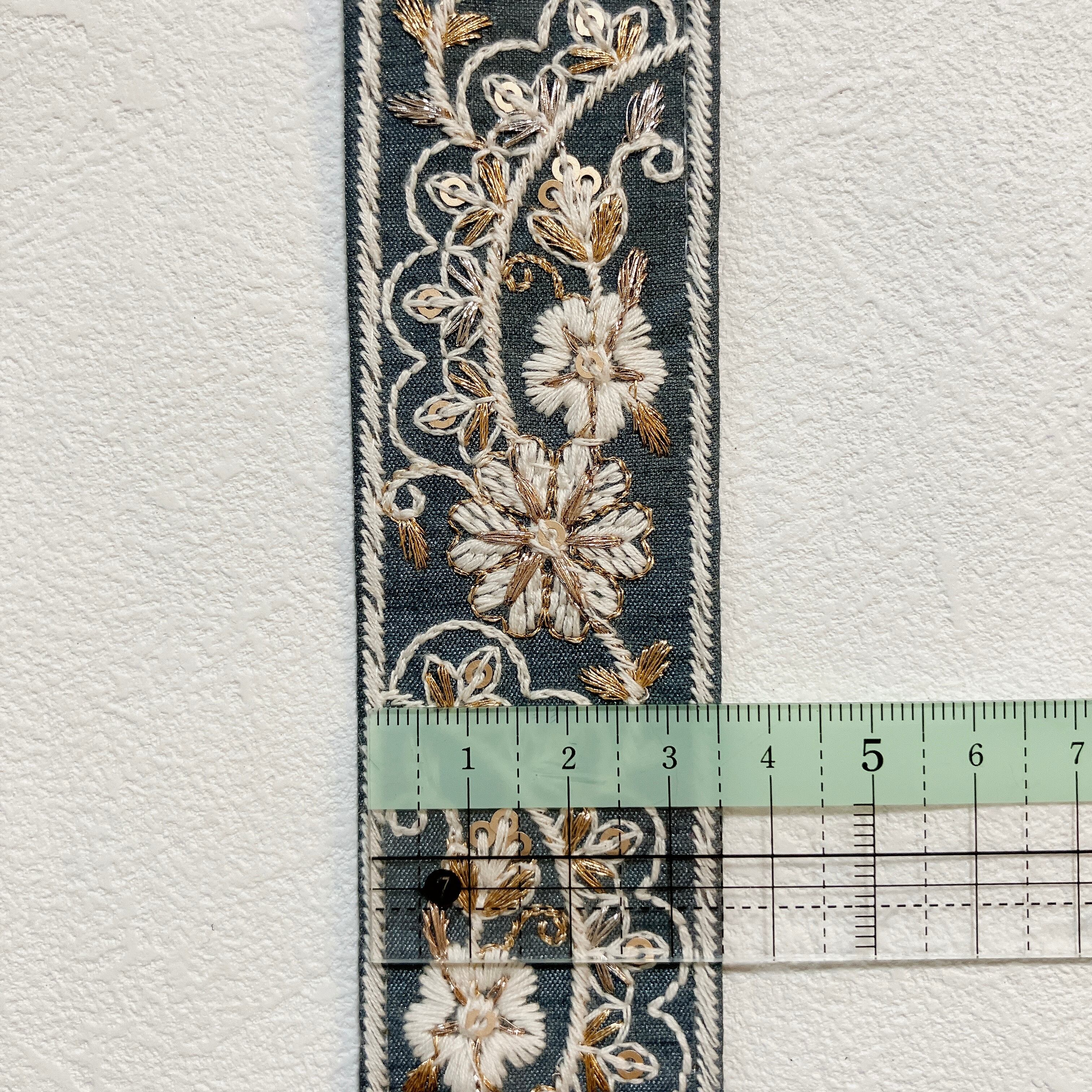フルール・ド・リュクス リボン [スモーキーブルー]インド刺繍リボン A_0550