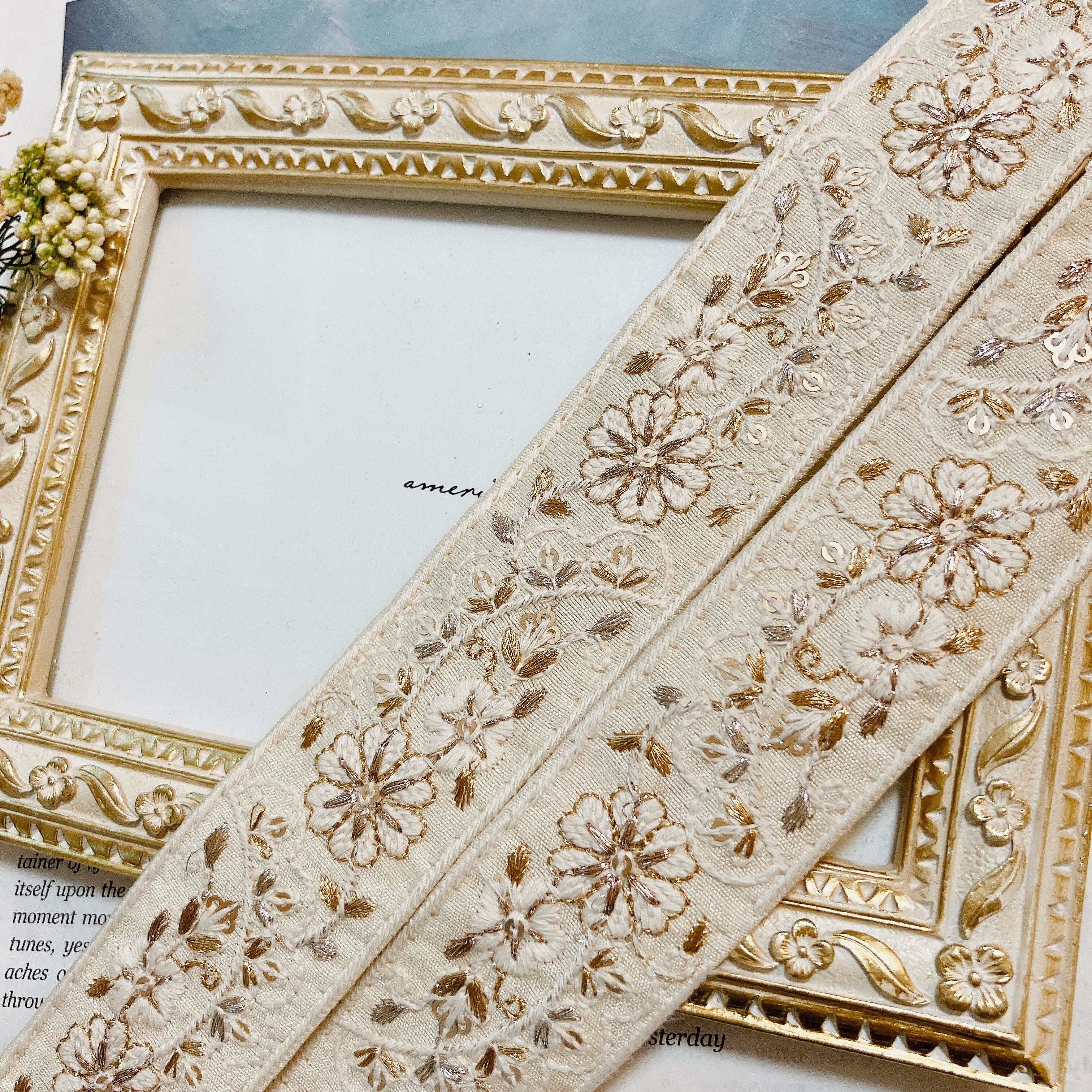 インドから直輸入した、カラフルで繊細なミシン刺繍が魅力のリボンです。