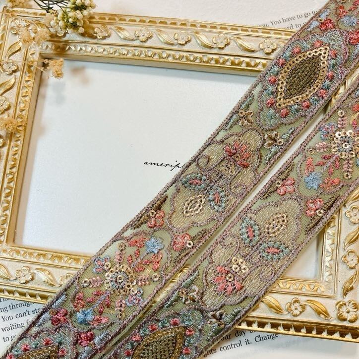 セレスティアルオーナメント [ダスティミント]インド刺繍リボン A_0563