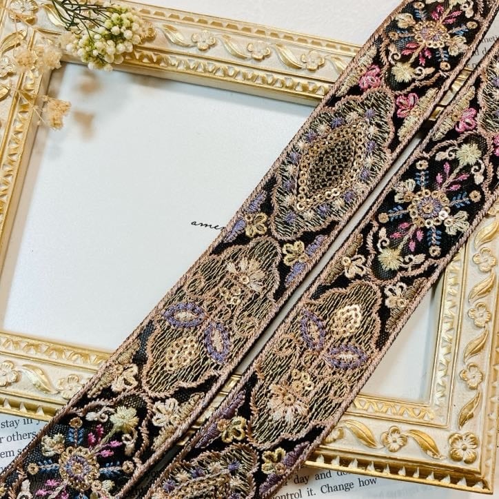 セレスティアルオーナメント [ノーブルブラック]インド刺繍リボン A_0565