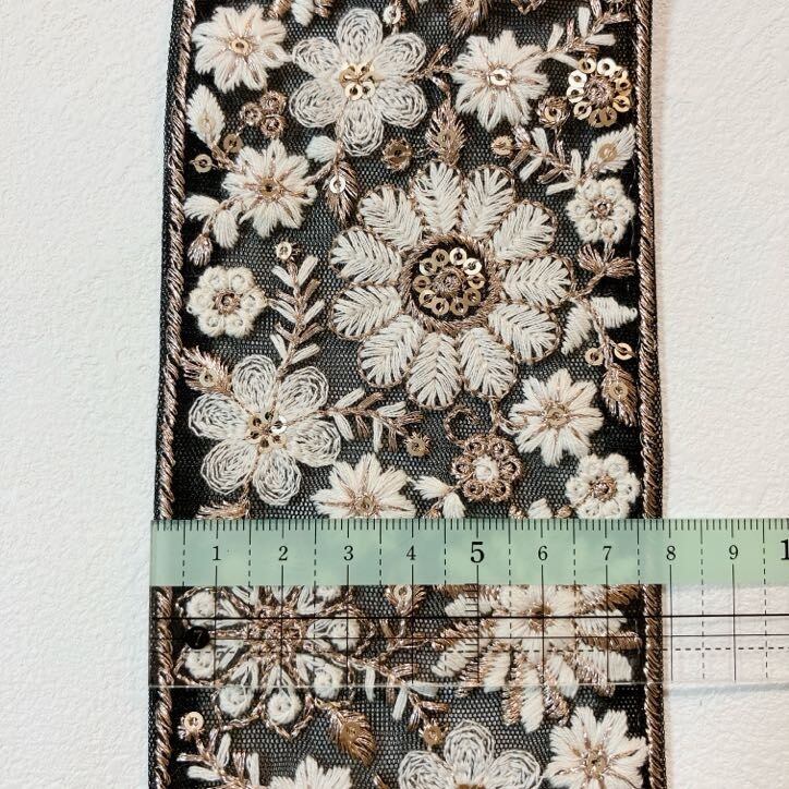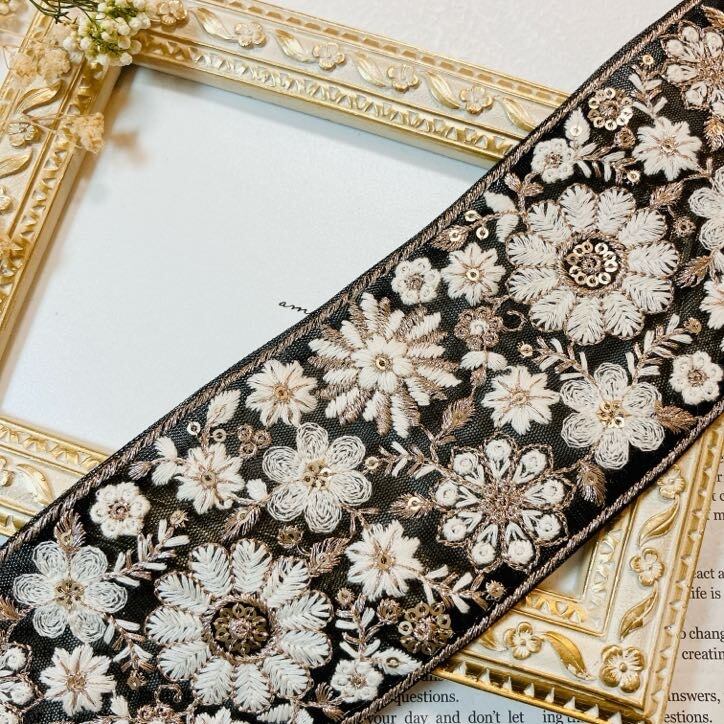 クラシックフラワー [エレガントブラック]インド刺繍リボン A_0571