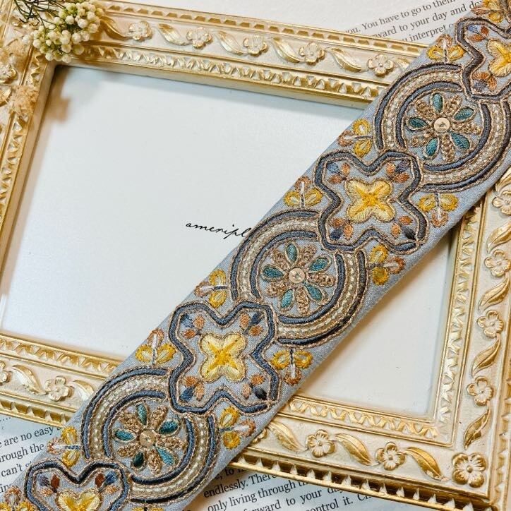 セレスティアルクロス [ダスティブルー]インド刺繍リボン A_0574