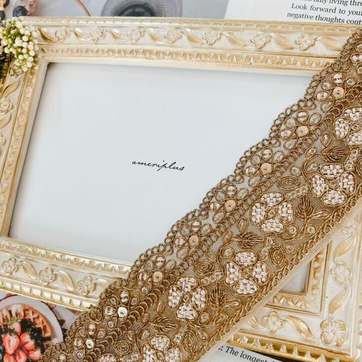 ヴィンテージルミエールレースリボン [モカシャンパン]インド刺繍リボン A_0579