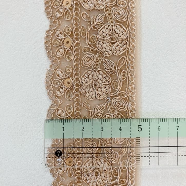 ヴィンテージルミエールレースリボン [グレージュアイボリー]インド刺繍リボン A_0580