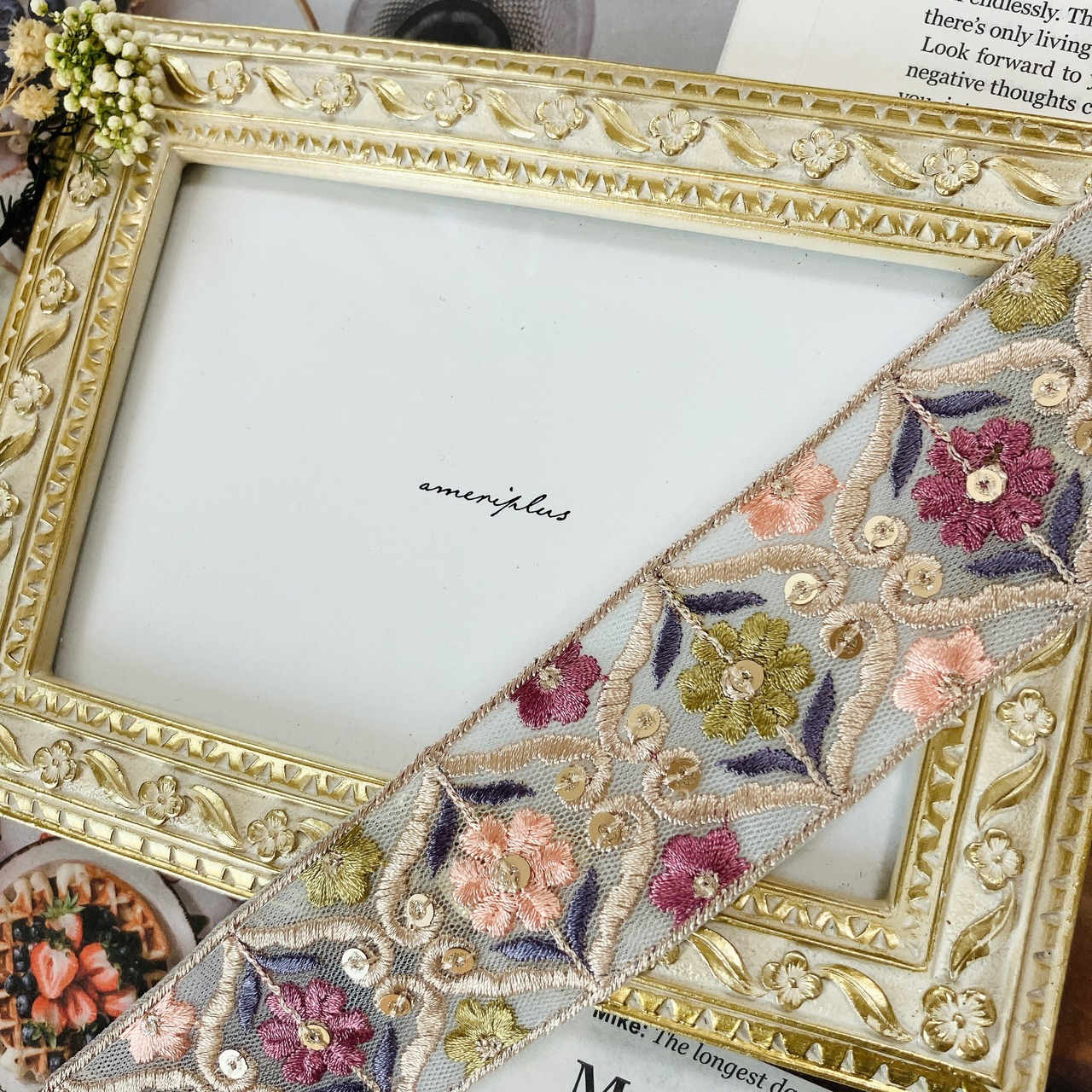 インドから直輸入した、カラフルで繊細なミシン刺繍が魅力のリボンです。
