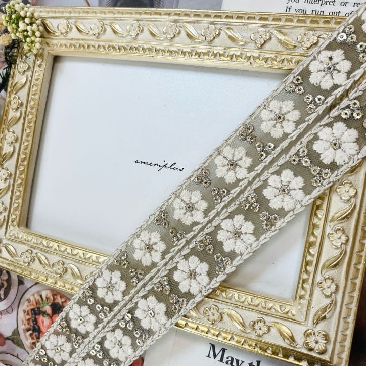 フルールブランエンブロイダリーリボン [グレージュトープ]インド刺繍リボン A_0589