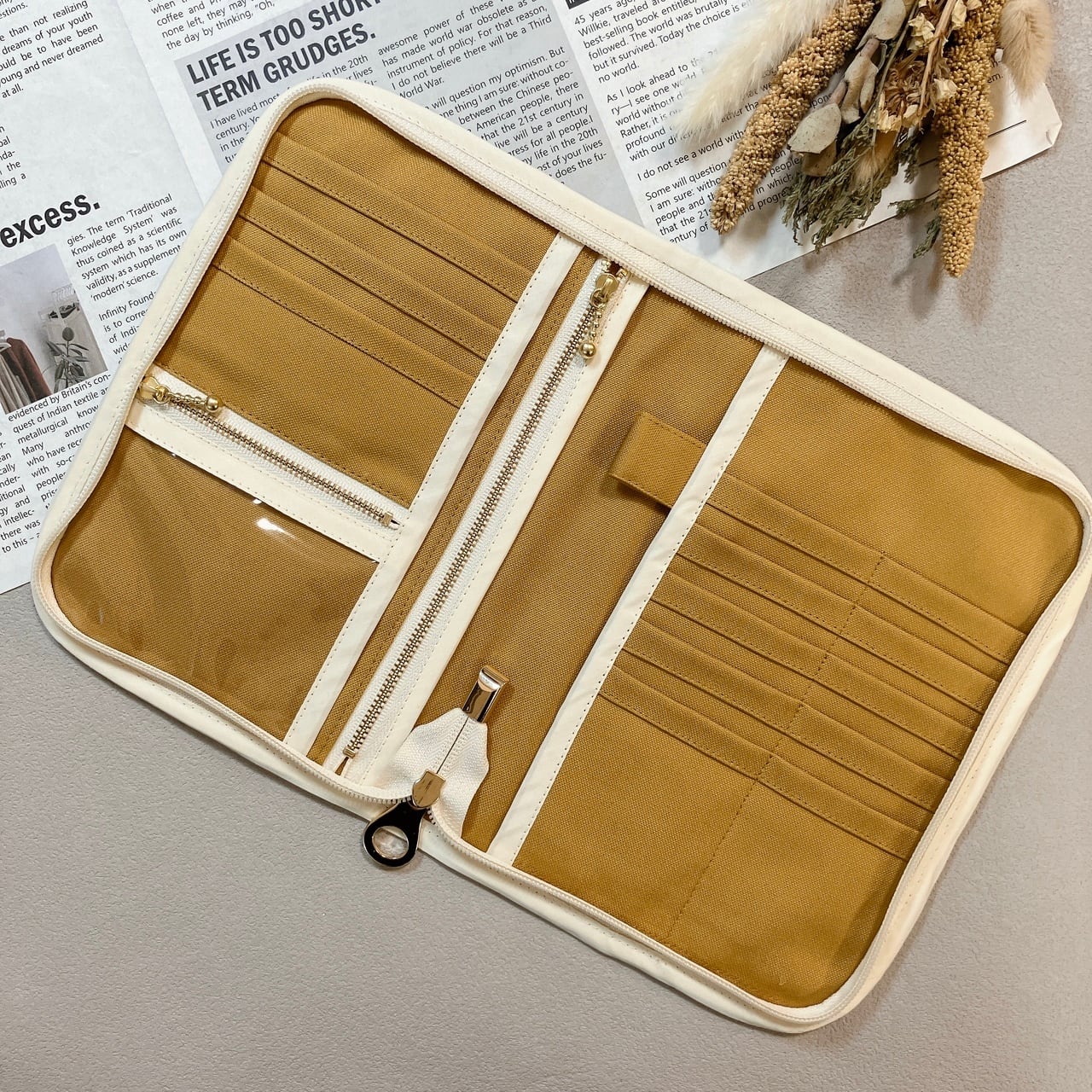 旅行時のパスポートケースや、通帳・カード・領収書の整理にも大活躍。