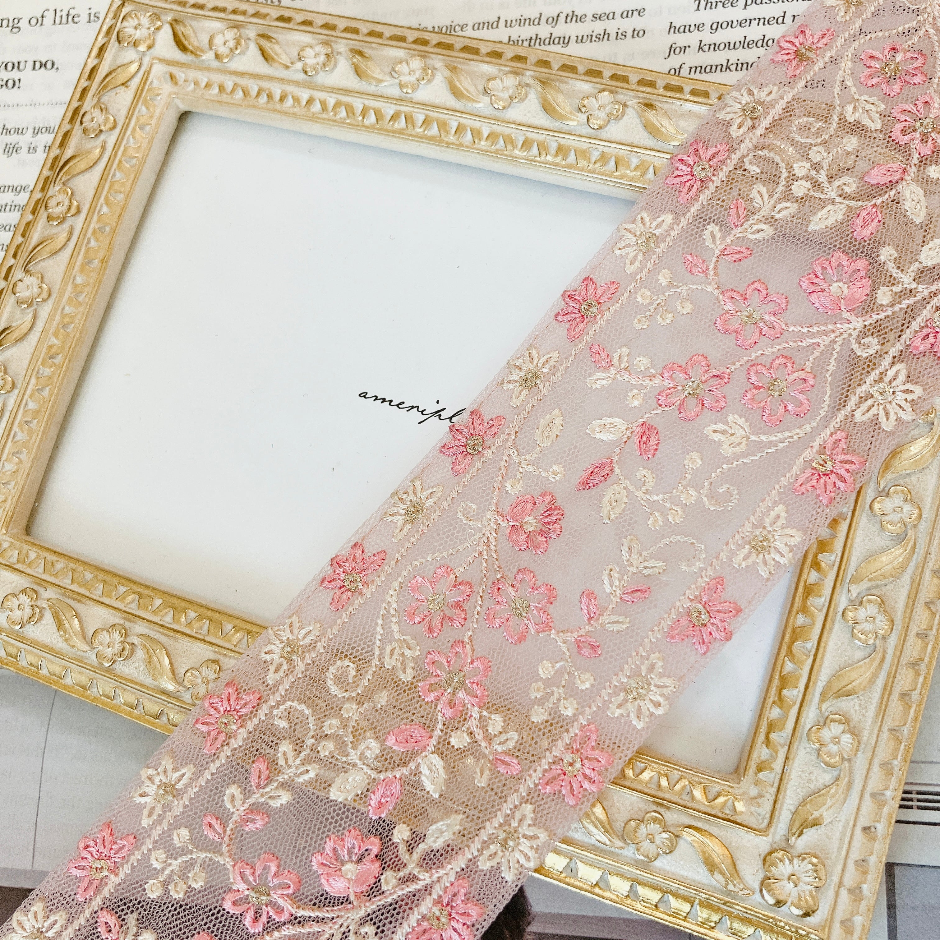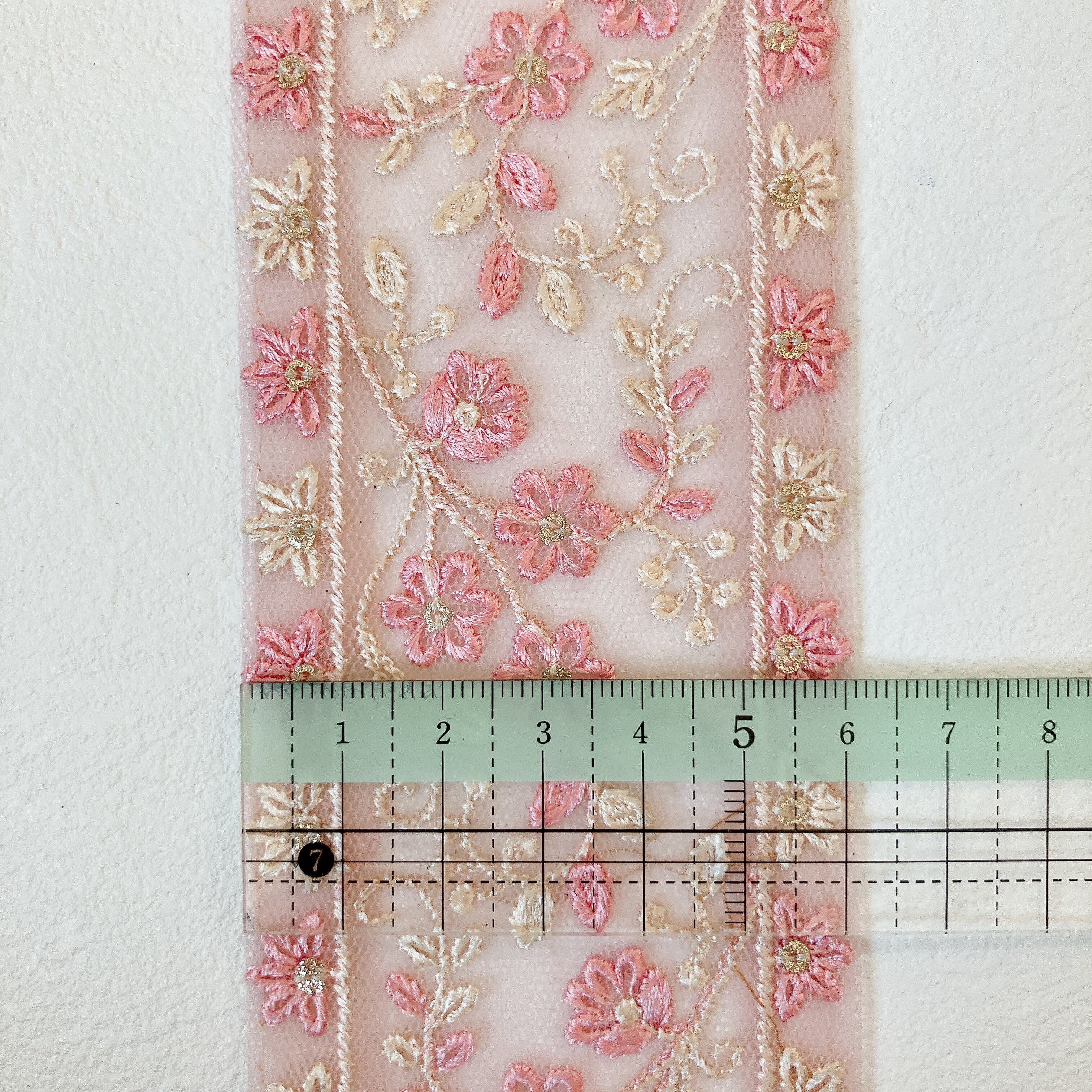 フローラ・レーヴ [ローズピンク]インド刺繍リボン A_0592