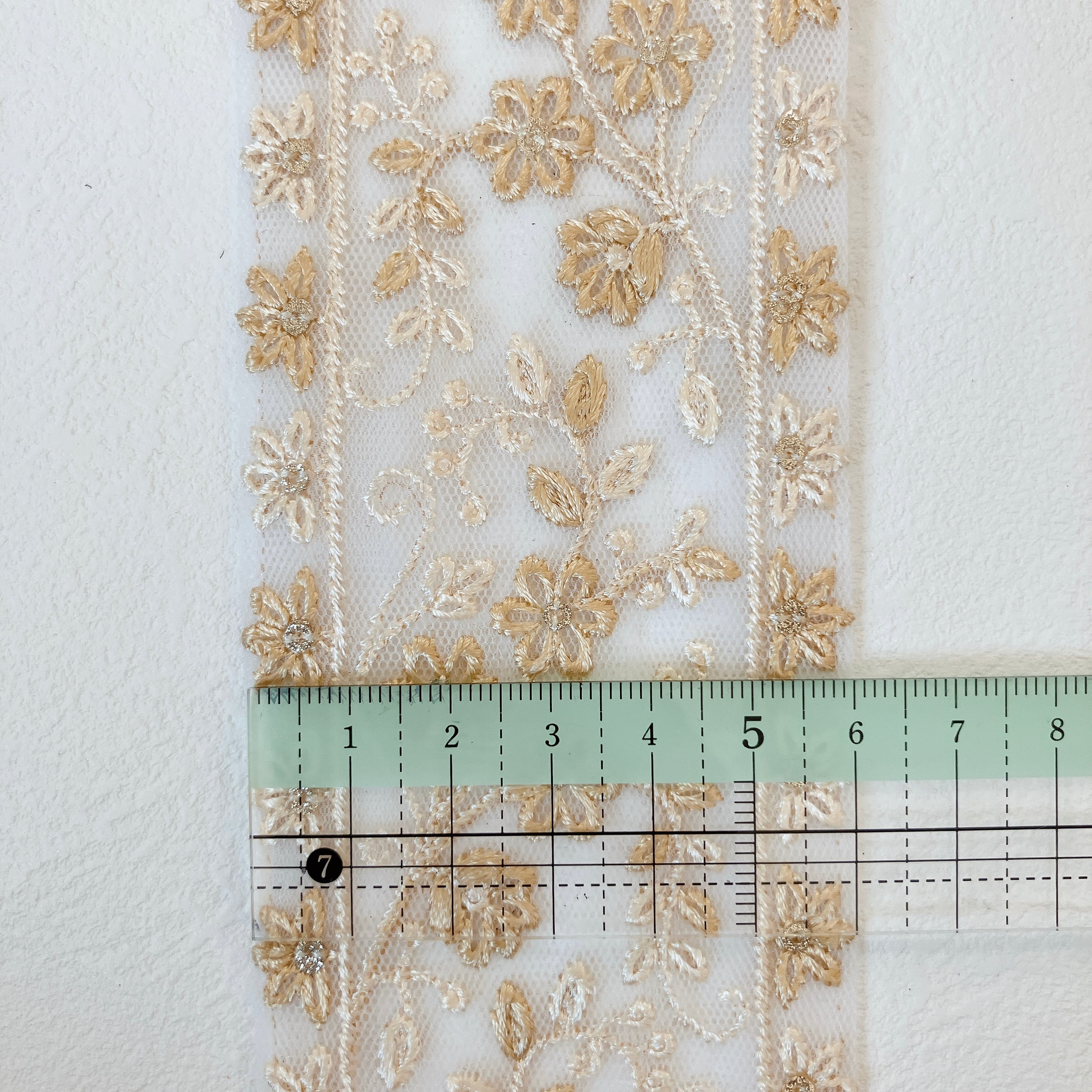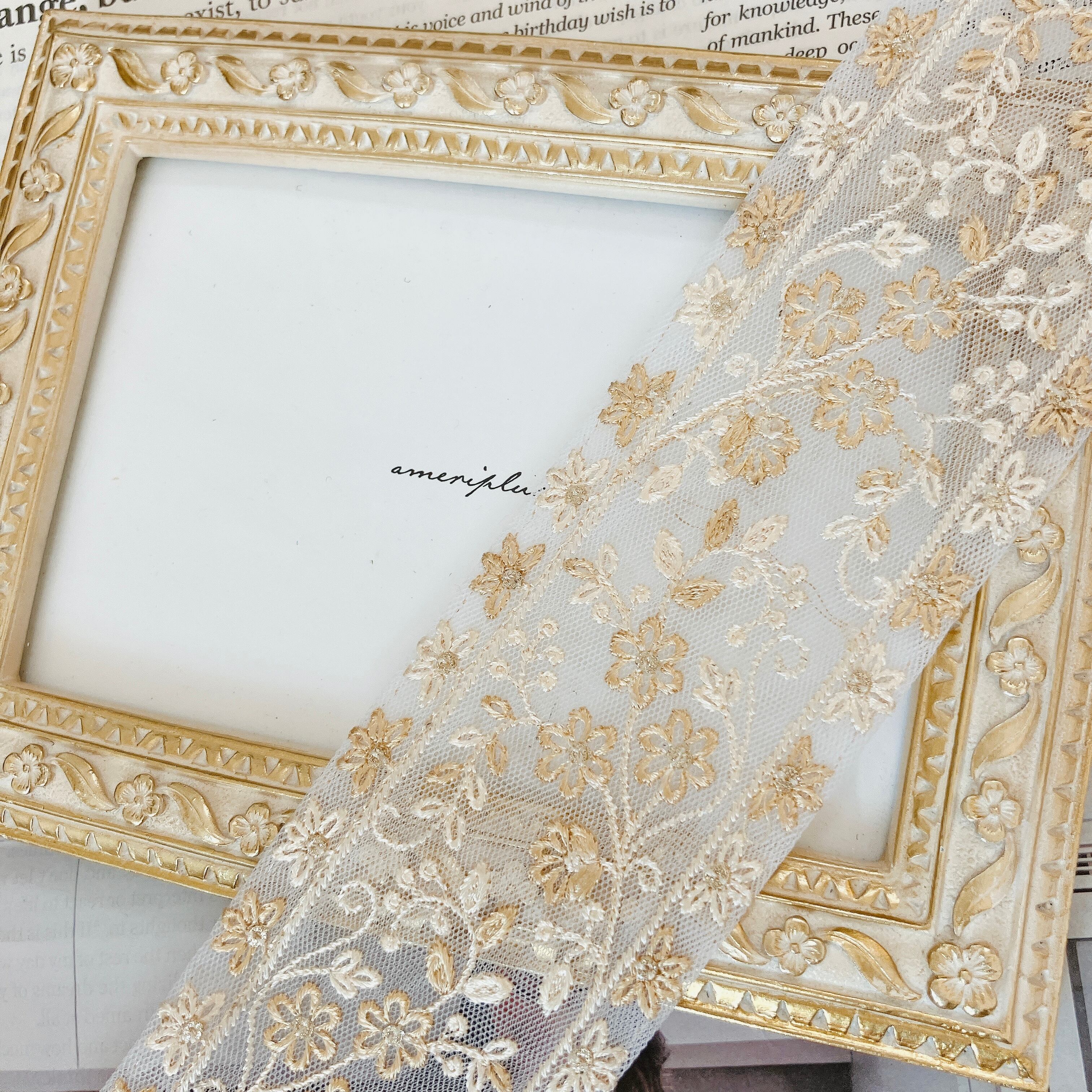 フローラ・レーヴ [ホワイトミルキーベージュ]インド刺繍リボン A_0594