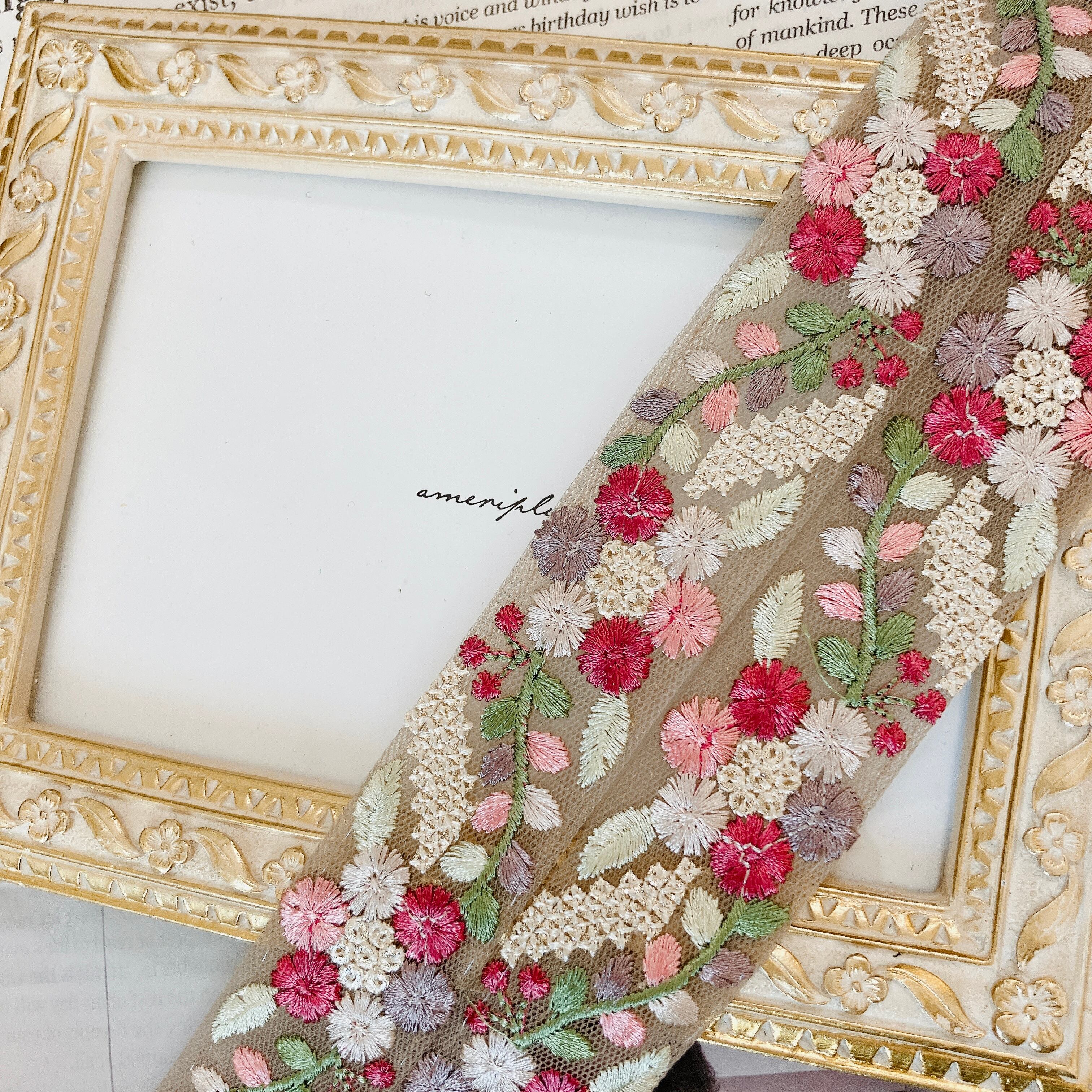 インドから直輸入した、カラフルで繊細なミシン刺繍が魅力のリボンです。