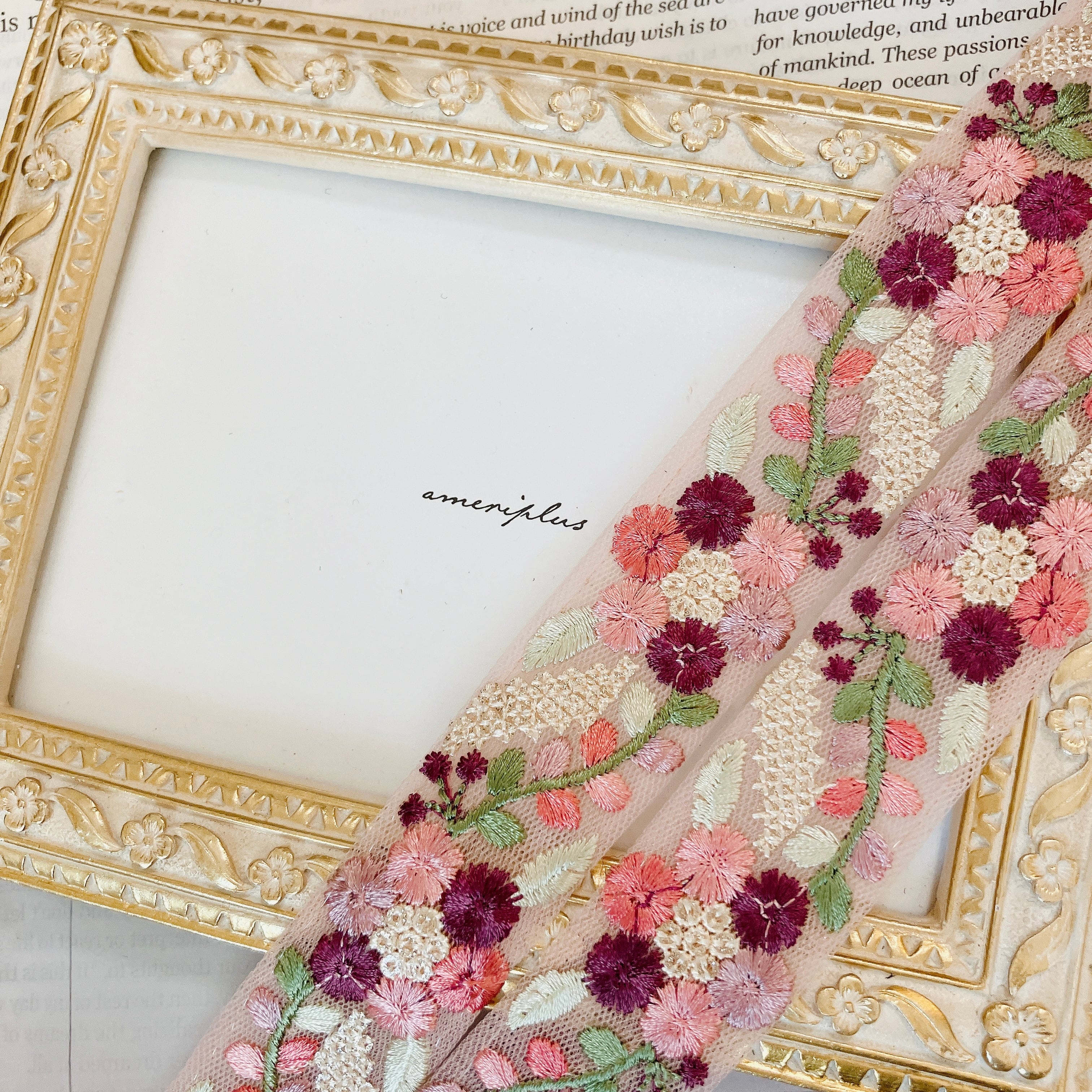 フルールエンブロイダリー チュールリボン [ペールモーヴ]インド刺繍リボン A_0603