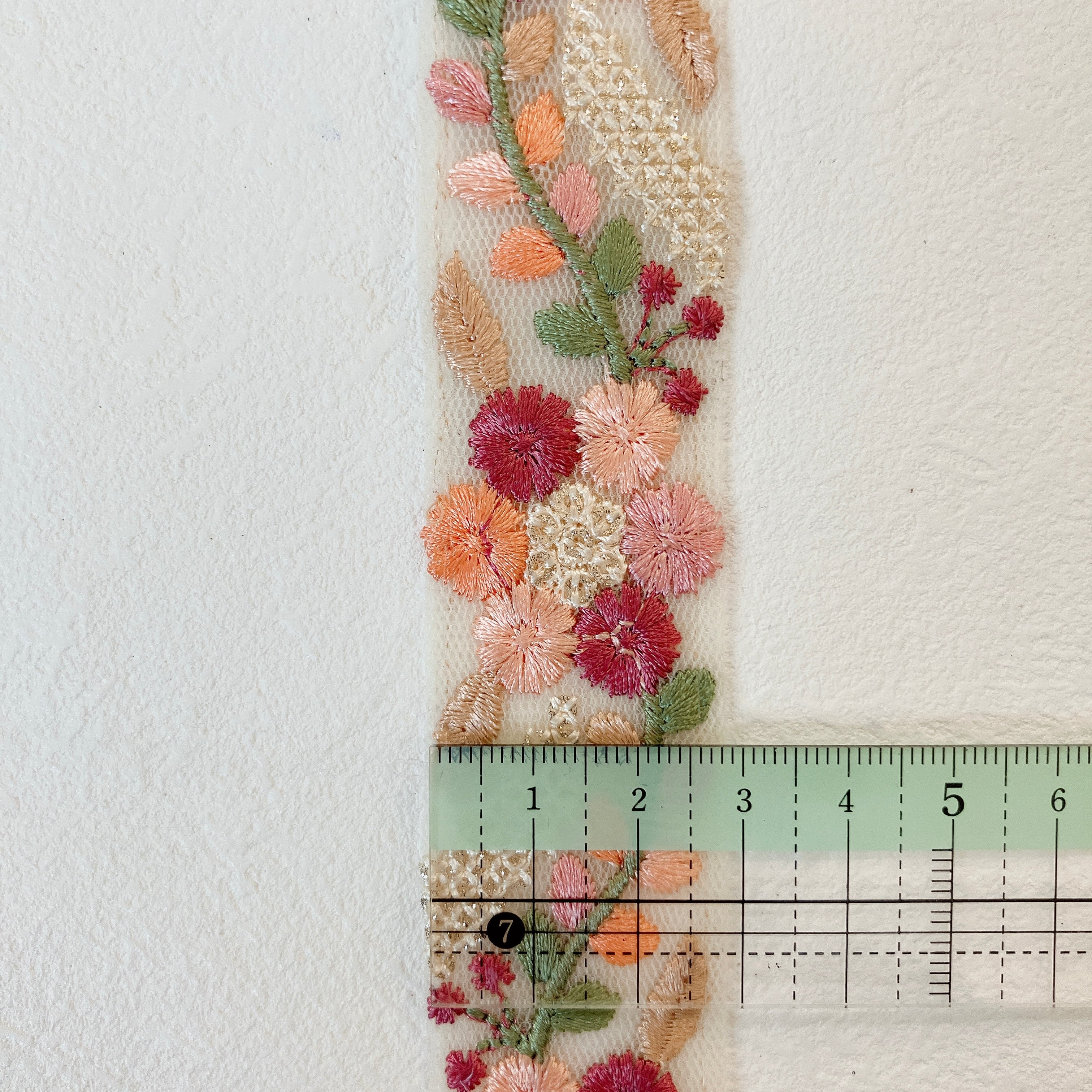 フルールエンブロイダリー チュールリボン [ウォームアイボリー]インド刺繍リボン A_0606