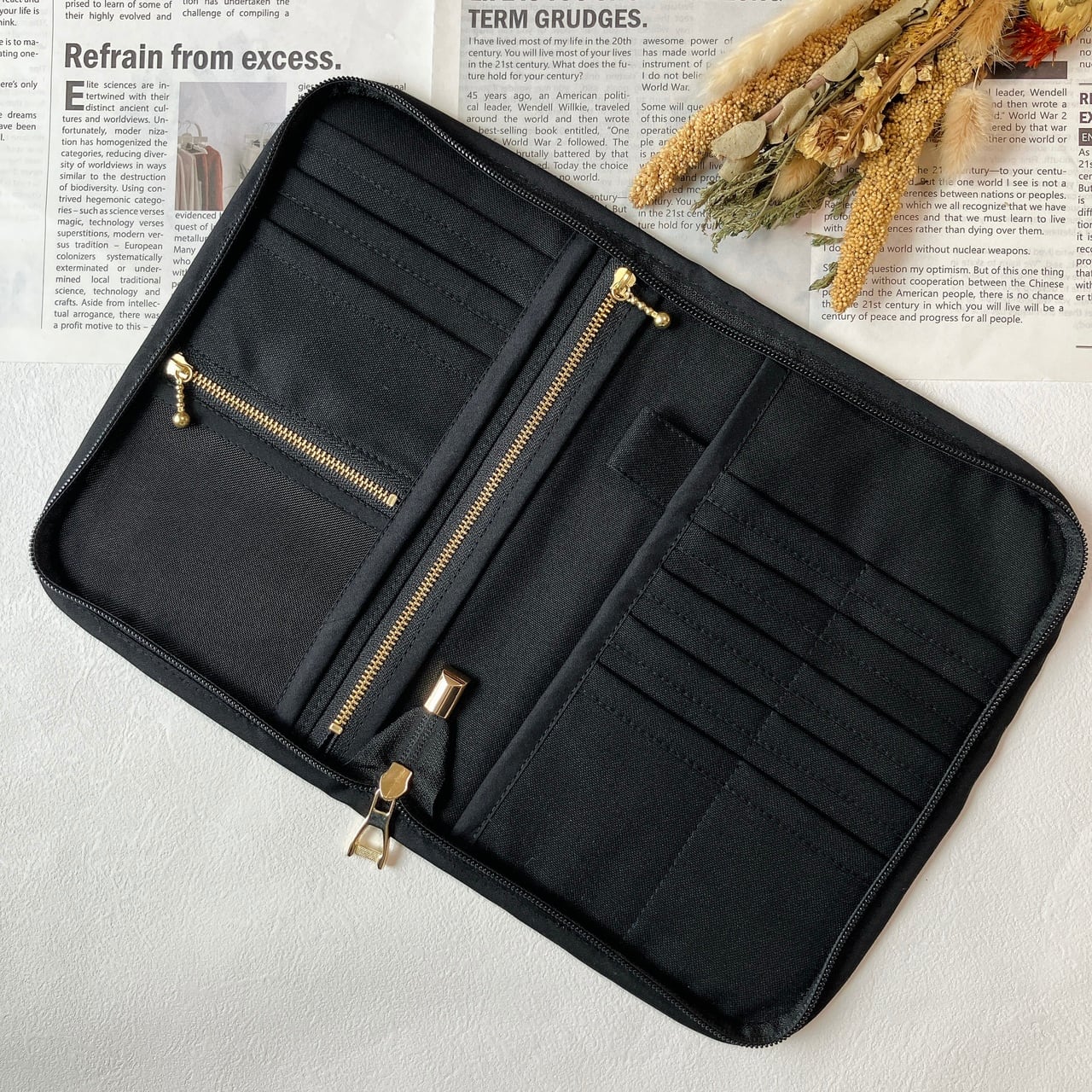 旅行時のパスポートケースや、通帳・カード・領収書の整理にも大活躍。