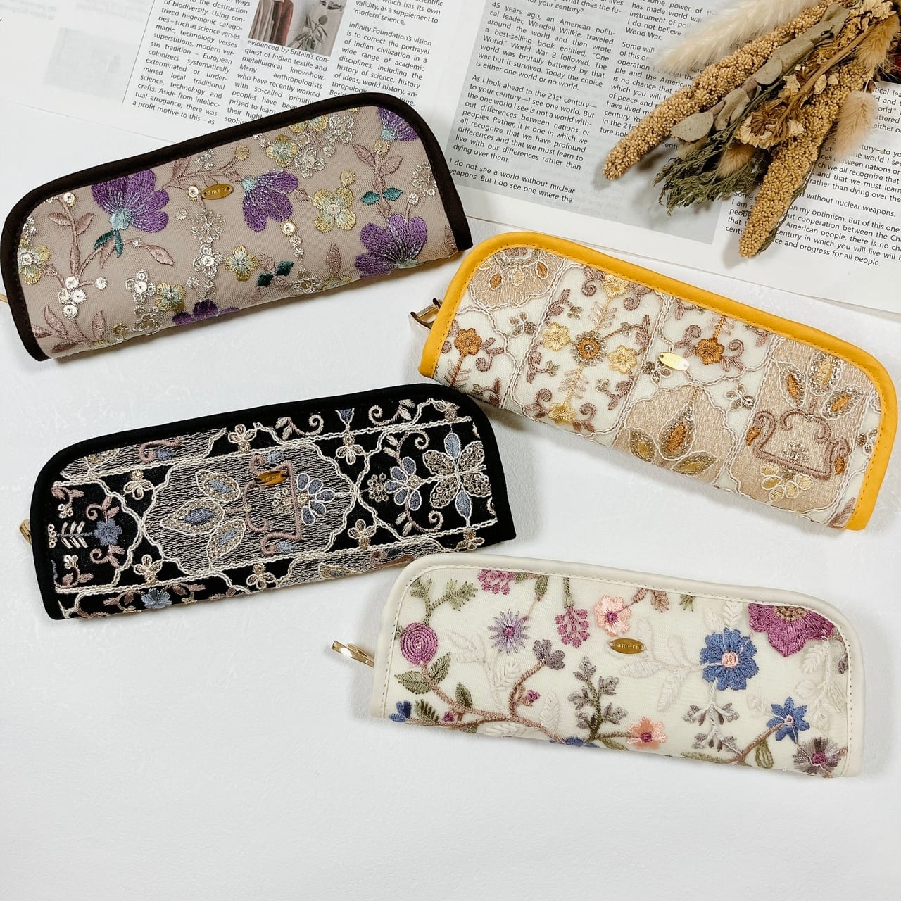 \ メガネも小物もすっきり収納♡ インド刺繍リボンのスリムポーチ /
