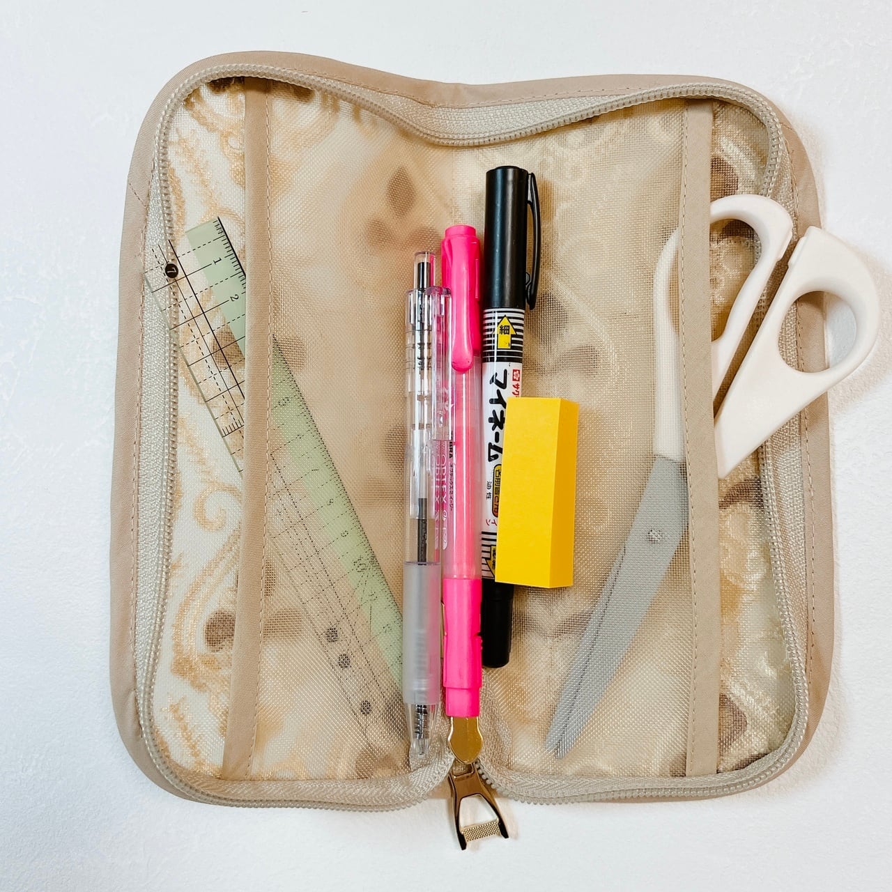 ペンや定規、ハサミなどの文房具を整理できる使いやすいペンケースとしておすすめです。