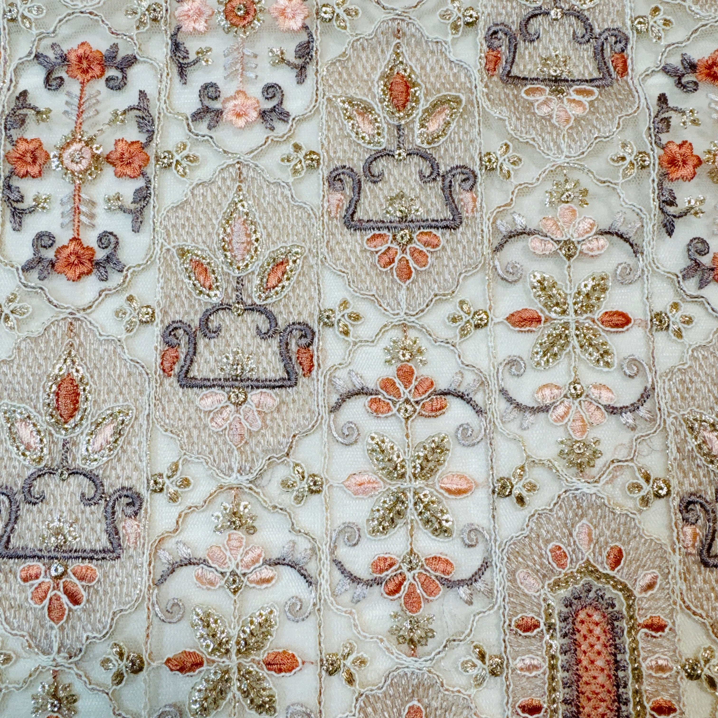 アンティーク・フィオーレ [ピンクローズ]インド刺繍生地 D_0018