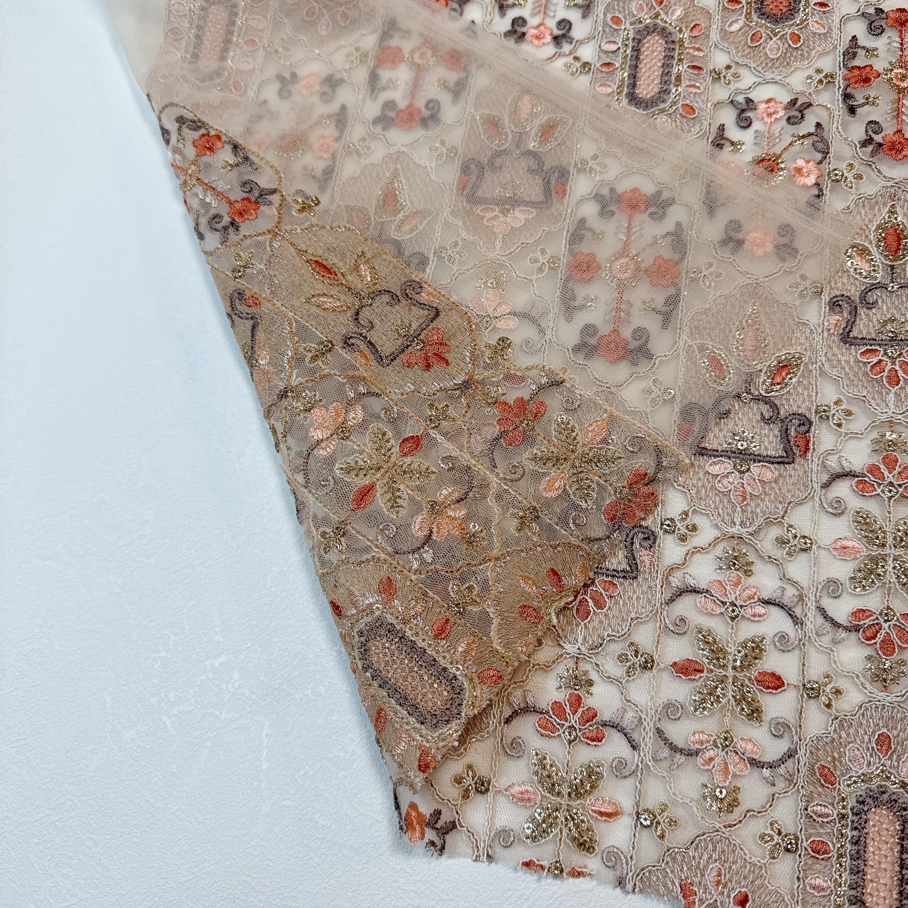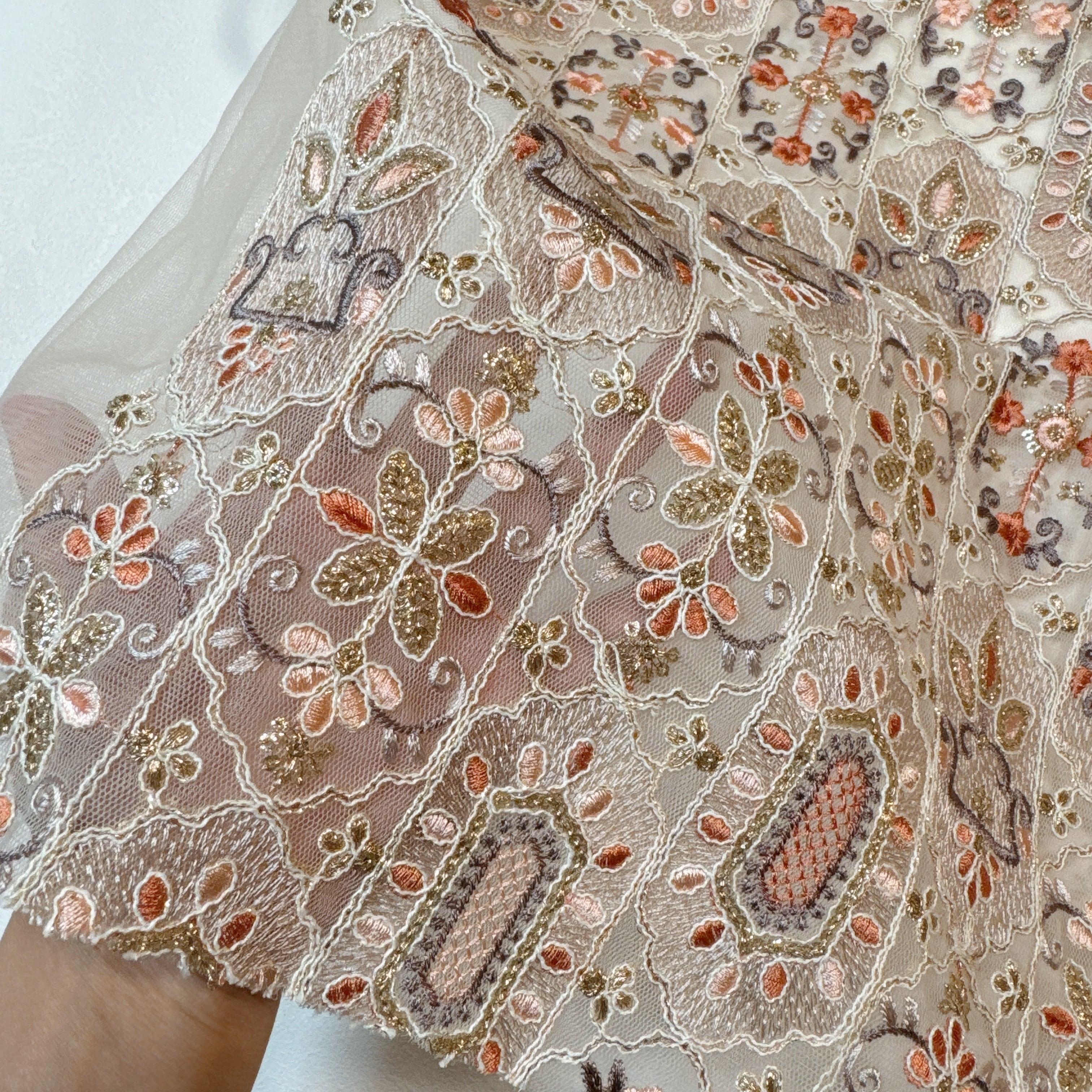 繊細な刺繍が施された生地です。