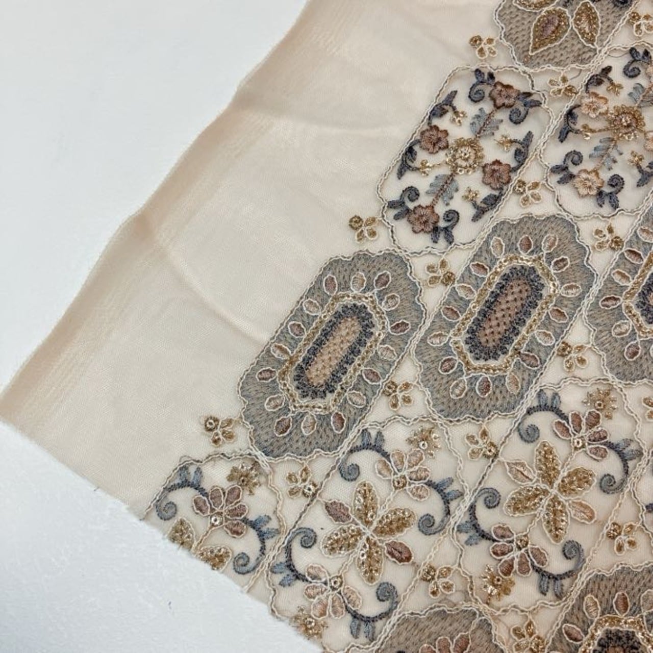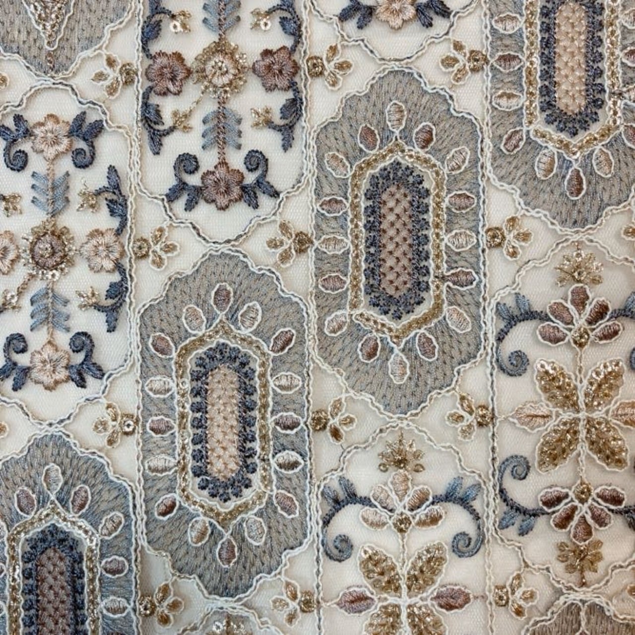 アンティーク・フィオーレ [ブルーグレージュ]インド刺繍生地 D_0020